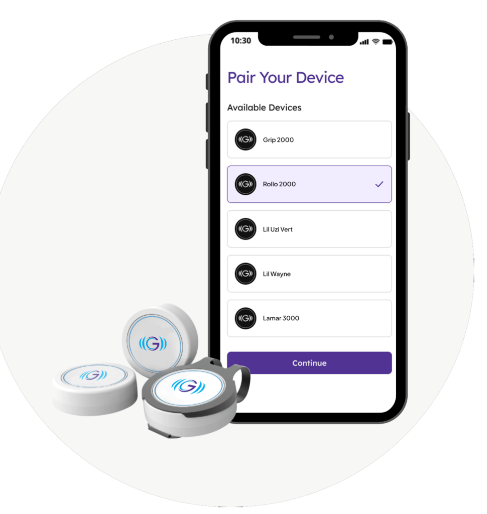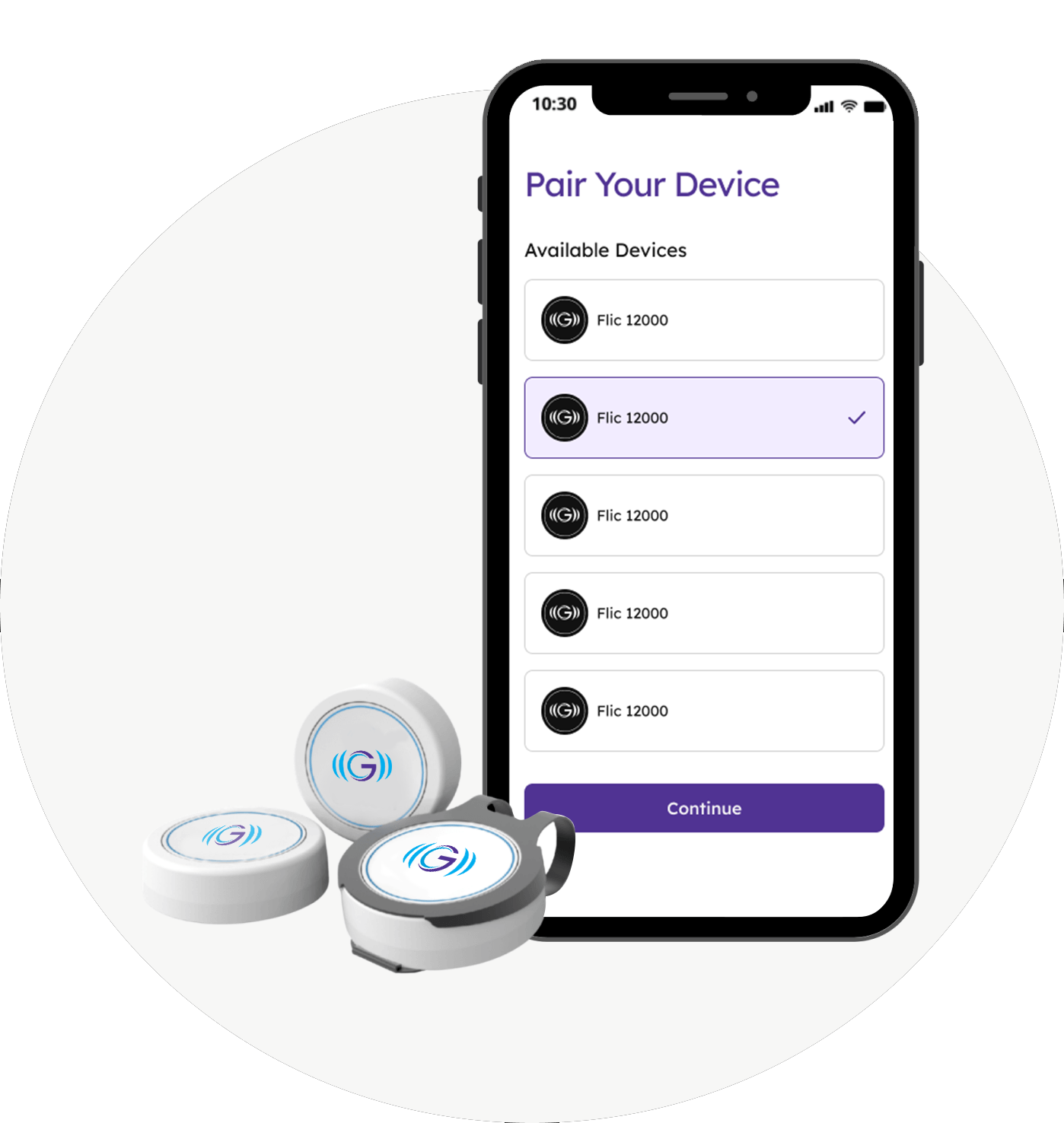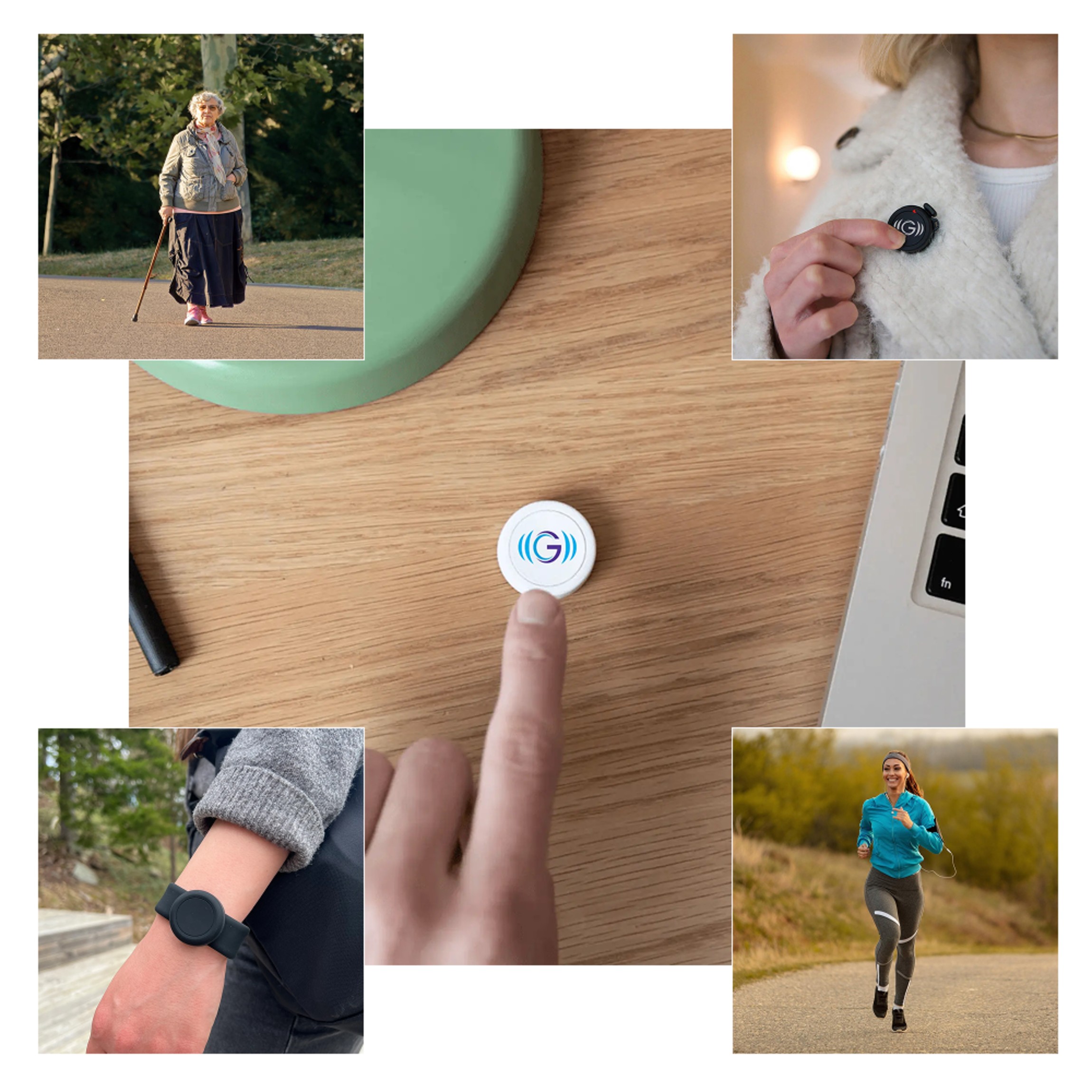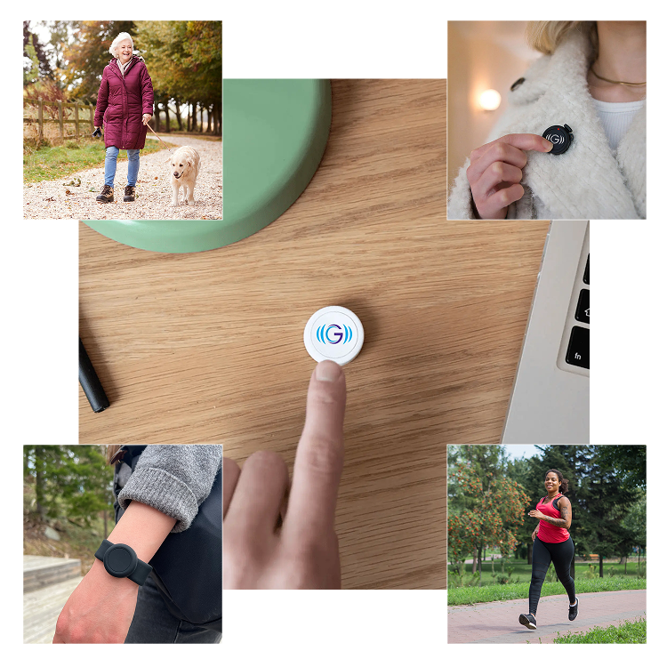 Press the bluetooth device once or twice to send a silent or audible alert to family, friends, or a third-party monitoring service. Alerts can be triggered through the app as well as the device.