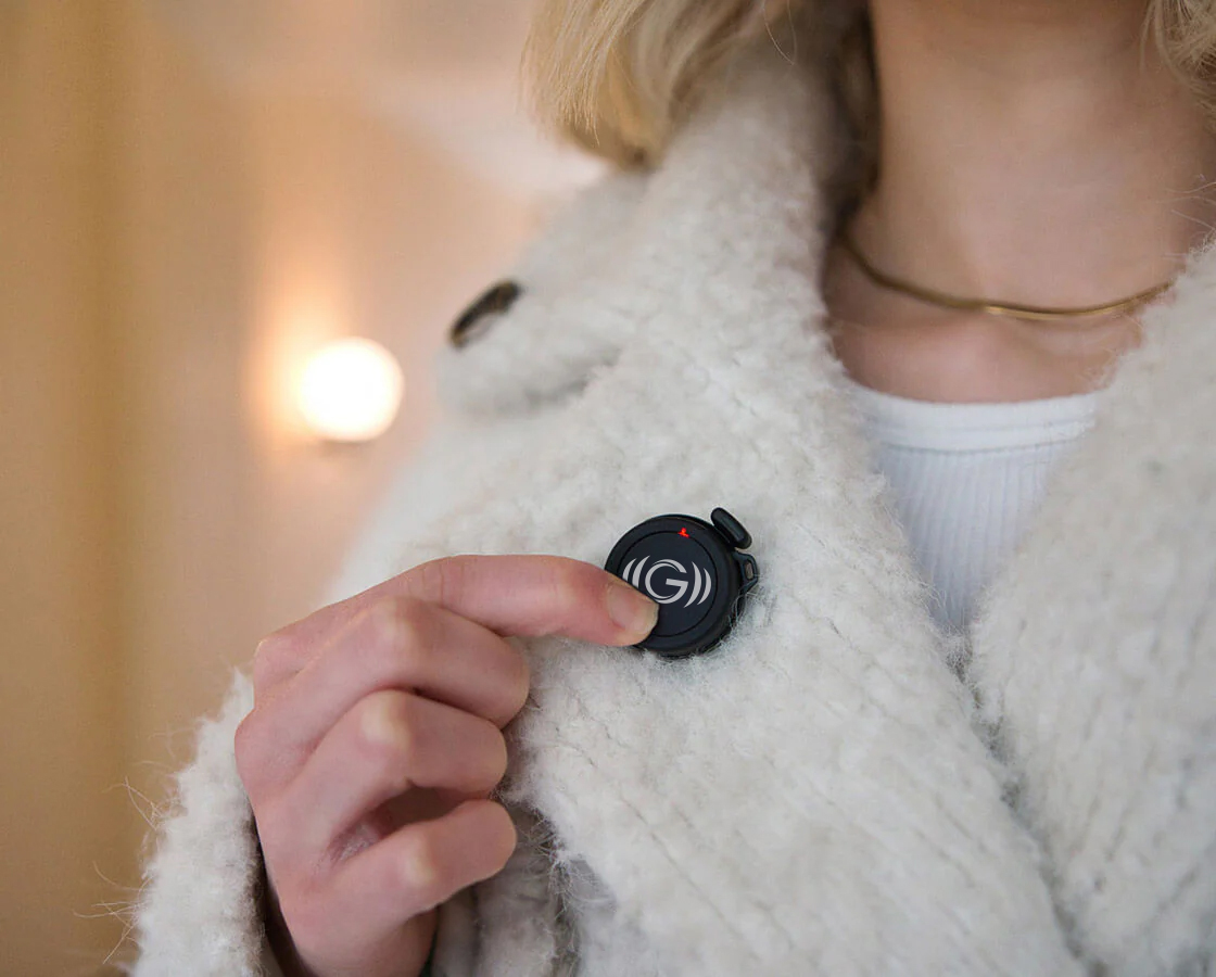 A compact accessory crafted with LumeoTech to enhance your safety experience. Easily attach it to the textile of your choice—be it clothing, furniture, or other surfaces—keeping your alerts just a button press away for immediate access to security wherever you are.